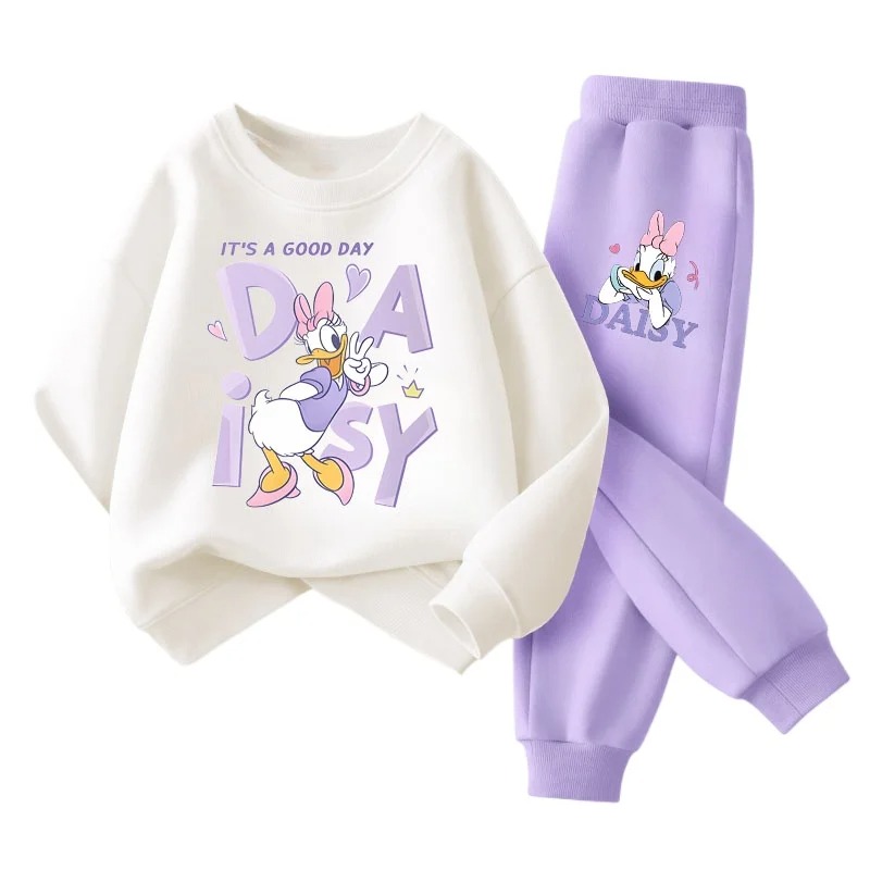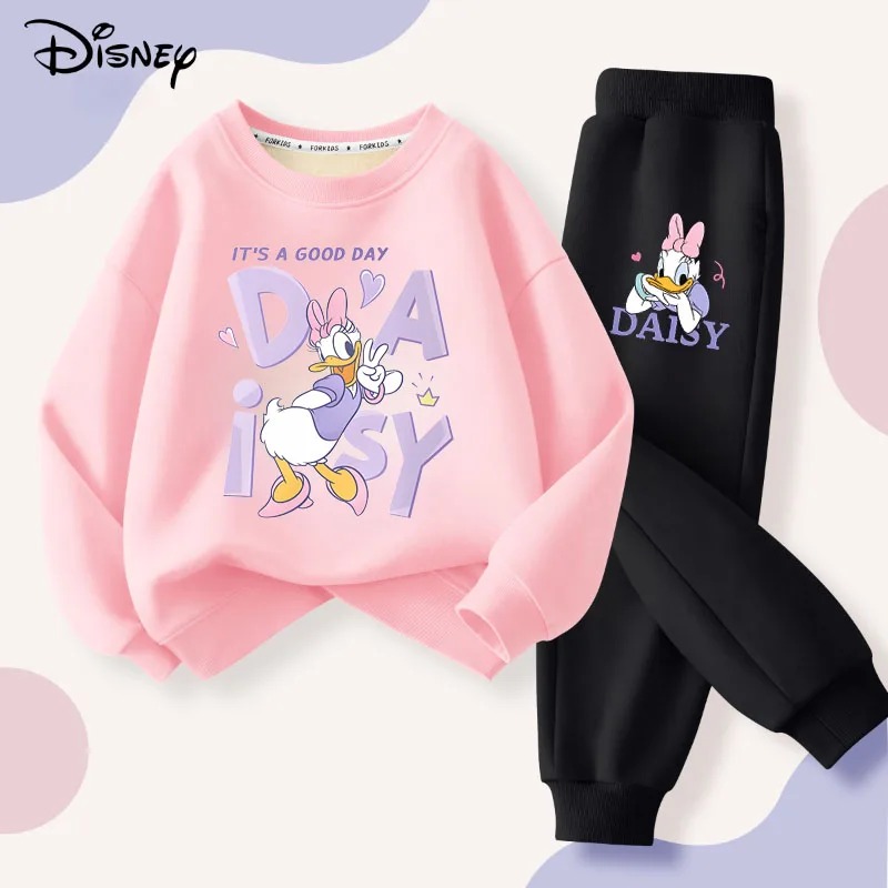 طقم ديزني ربيع الجديد مثالي للبنات اللي يحبّون الستايل الكيوت والمريح. الطقم يتكوّن من هوديس بأكمام طويلة مع بنطال طويل مريح، تصميمه عملي وغير رسمي، مناسب للنشاطات اليومية أو اللعب.