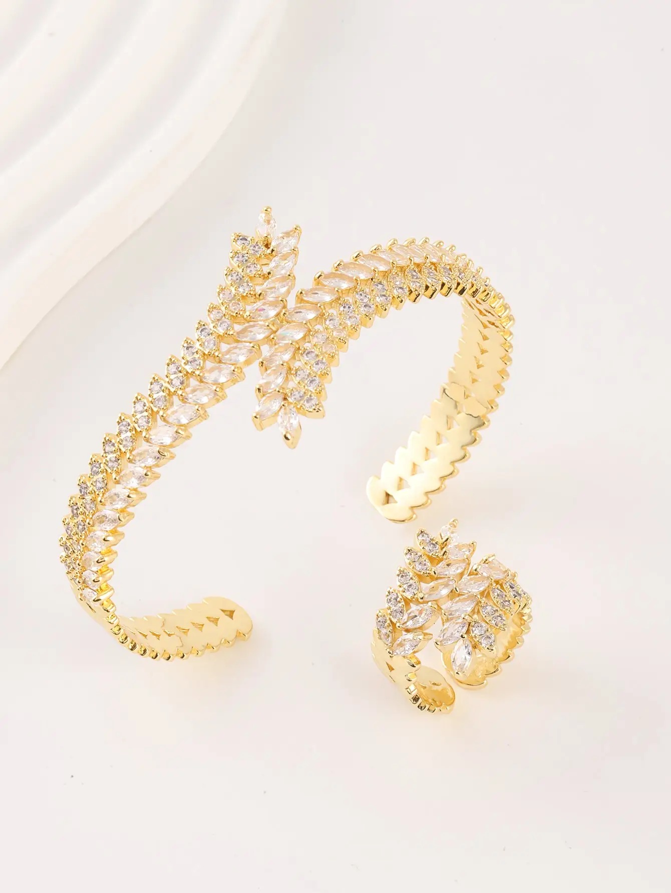 سوار أذن القمح الأوروبي قطعة أنيقة وعصرية للبنات اللي يحبّون المجوهرات الرفيعة والستايل المودرن. مصنوعة من نحاس عالي الجودة ومزوّدة بتطعيم مايكرو دقيق يعطي لمسة فاخرة ولامعة.