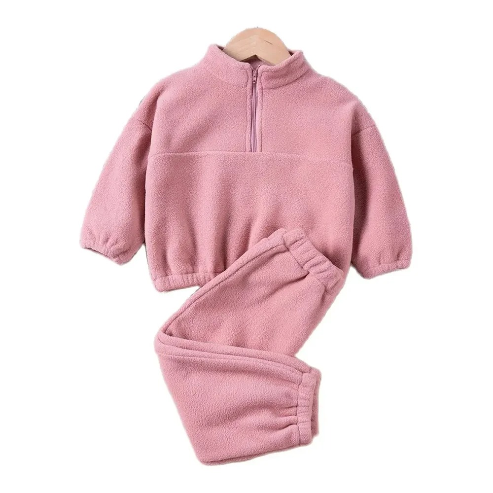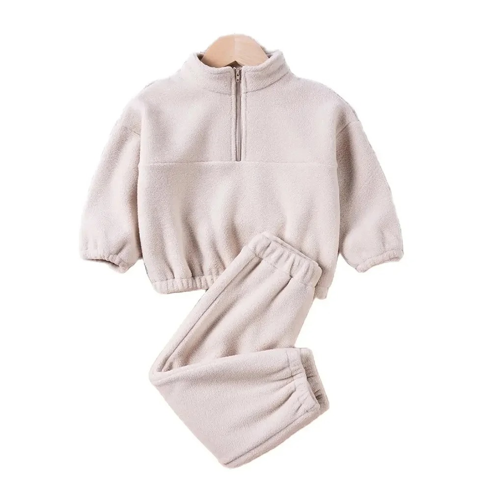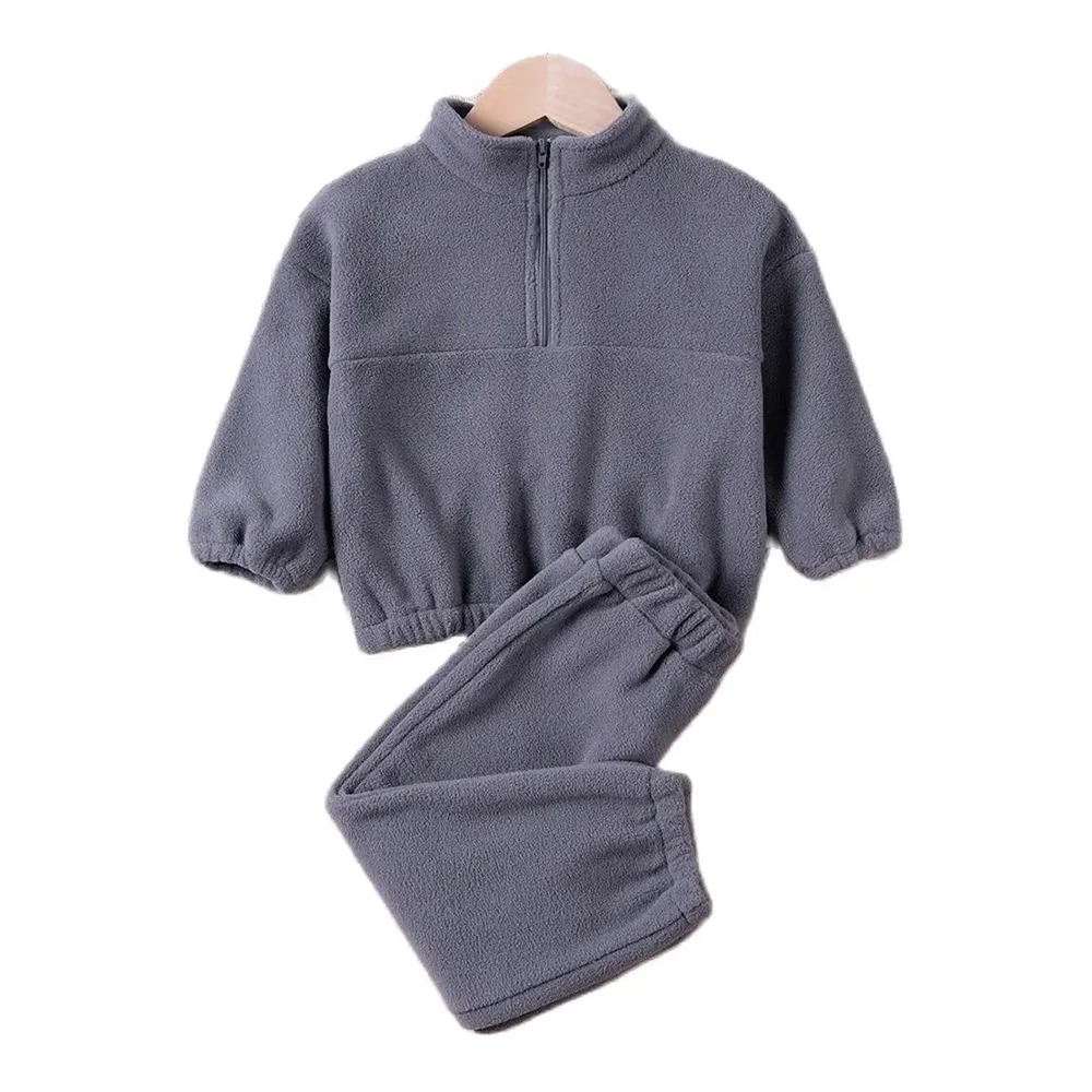 طقم شتوي ناعم للأولاد والبنات، يجي بنص بلاكيت (سحاب نص) بخامة فليس قطبي دافئة مرّة، مع بنطال مريح بنفس اللون. الطقم عملي وخفيف باللبس، ومناسب للبيت، الروضة، والخروج الخفيف. يعطي دفء ممتاز بدون ما يثقل على الطفل ❄️🧒👧