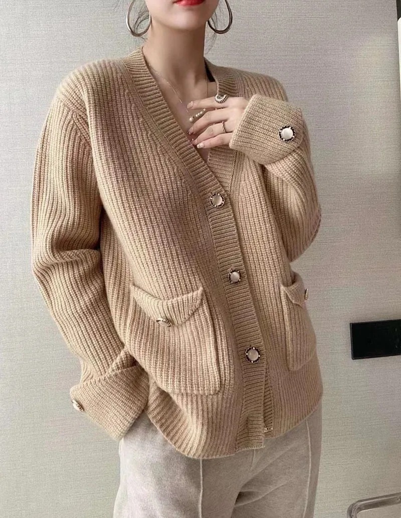 سترة دافئة وواسعة بقصّة كورية عصرية، تجي بأزرار أمامية وجيبين يعطونها لمسة عملية وأنيقة، مثالية لأيام البرد وللتنسيقات اليومية المريحة.