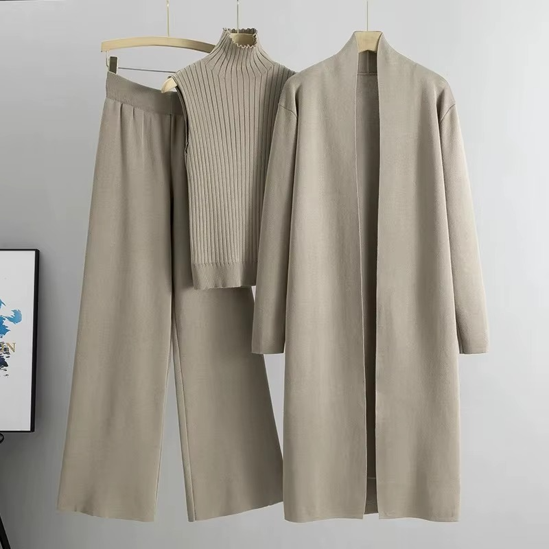 🧶 وصف طقم السيدات المحبوك (3 قطع) للربيع والخريف