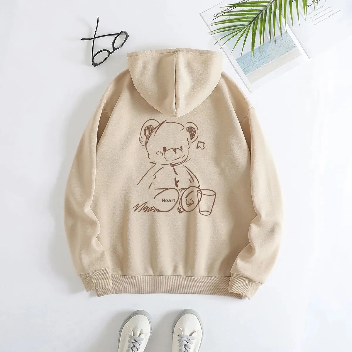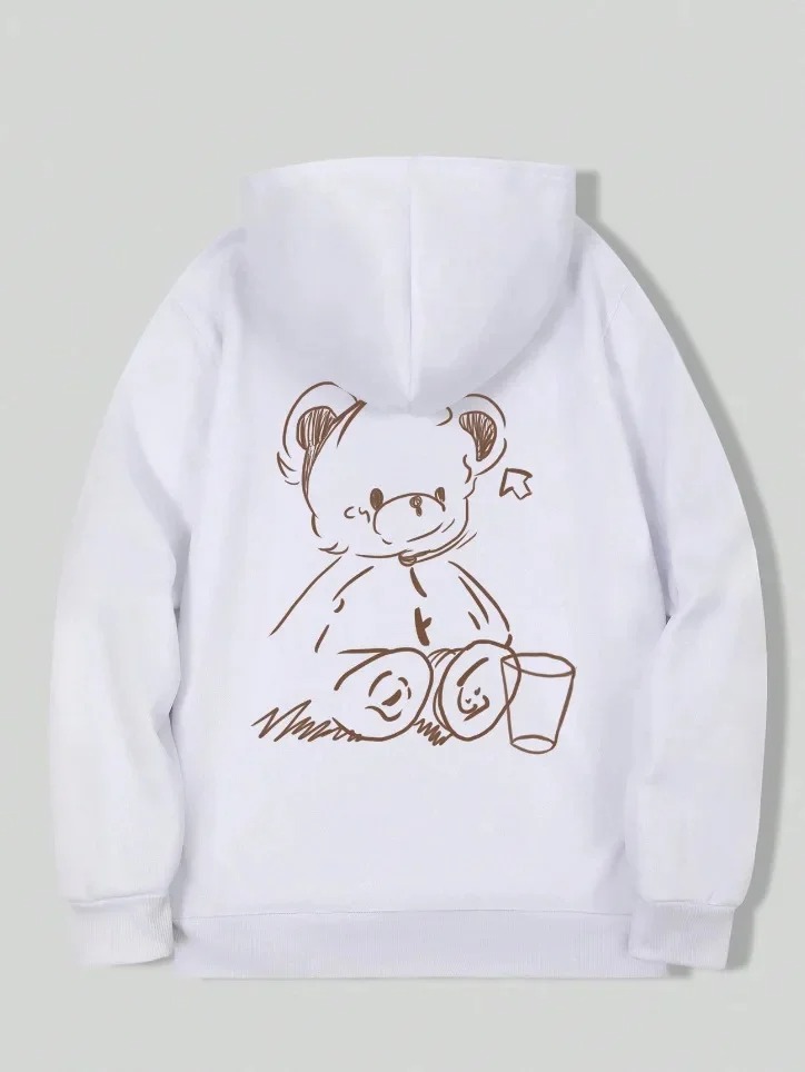 هوديي عملي وعصري مصنوع من ألياف البوليستر، يأتي بأكمام طويلة وجيب أمامي عملي، مزين برسومات كرتونية ممتعة، مناسب للبس اليومي وطلعاتك الكاجوال.